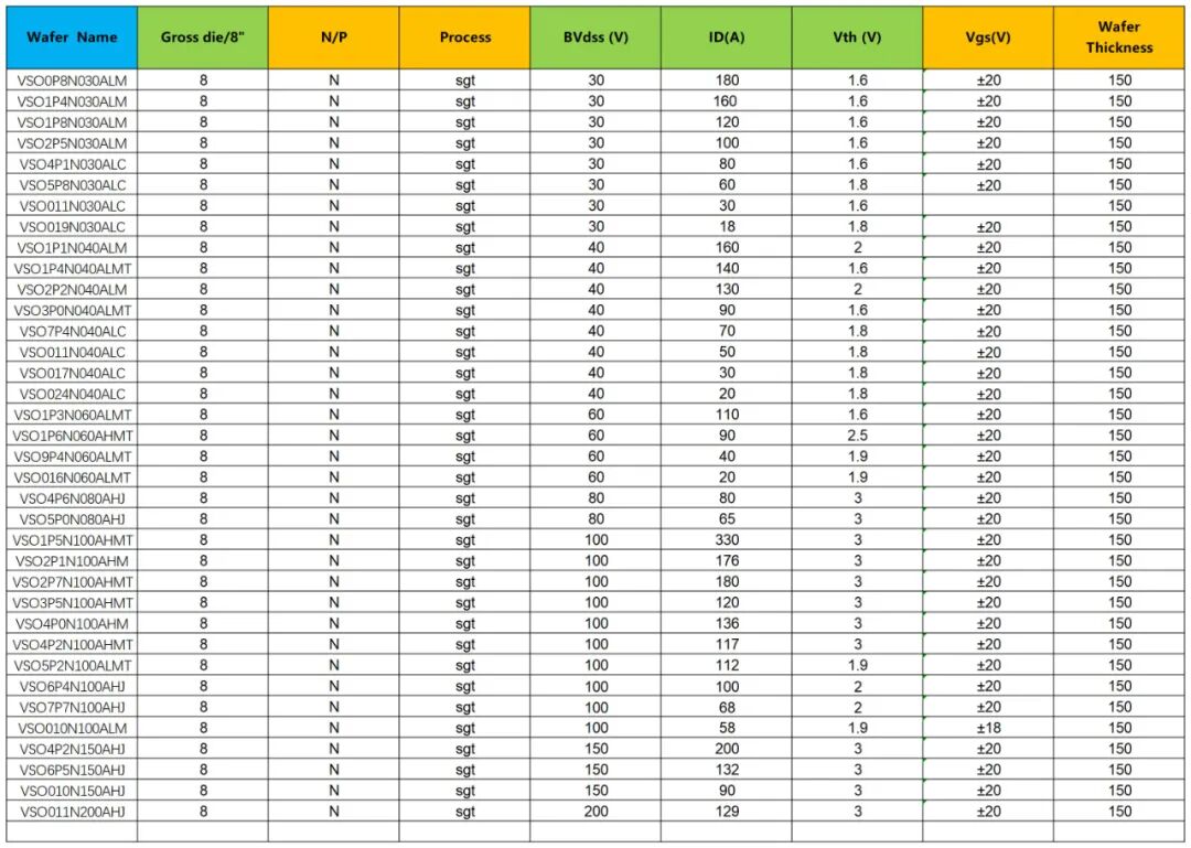 旷通SGT MOSFET产品